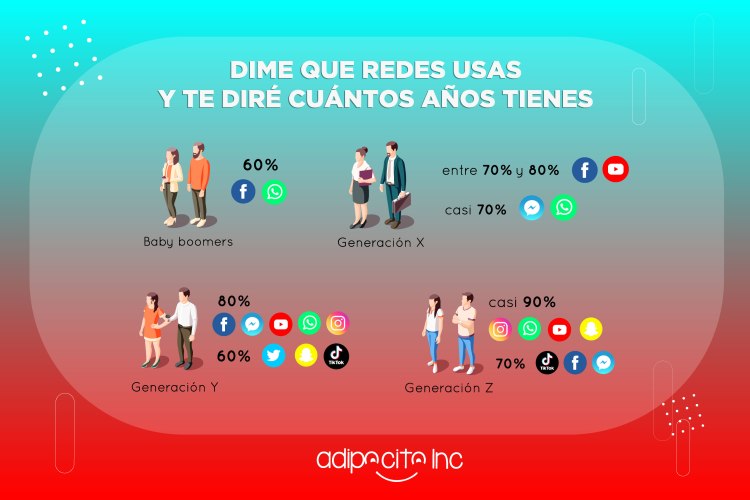 Las redes sociales ya son parte cotidiana de nuestra vida, anteriormente eran plataformas exclusivas de la gente más joven, pero actualmente ya hay miembros de todas las generaciones existentes haciendo uso de ellas. En el caso de los baby boomers, personas nacidas entre 1949 y 1968, tienen a Facebook y WhatsApp como sus redes sociales favoritas. Se estima que casi 60% de los baby boomers ya tienen una cuenta en estas plataformas y las visitan con frecuencia. La generación X, gente nacida entre 1969 y 1981, tiene una clara preferencia por YouTube y Facebook. Se estima que entre 70 y 80% de las personas generación X, usan constantemente ambas plataformas. Messenger y WhatApp son otras de sus favoritas, con casi 70% de visita y uso frecuente. Los millennials, personas nacidas entre 1982 y 1994, tienen una lista de redes sociales preferidas más variada. Facebook, Messenger, Youtube, WhatApp e Instagram son sus predilectas desde hace varios años, 80% de los millennials usan frecuentemente todas estas plataformas. En una menor medida, que ronda 60%, aparece Twitter, TikTok y SnapChat. Finalmente están las preferencias de la generación Z, gente nacida entre 1995 y